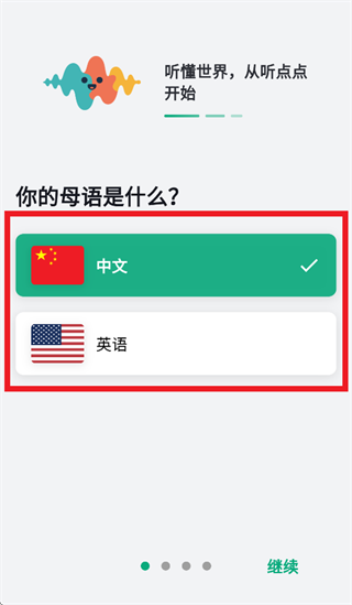 先选择母语,点击继续