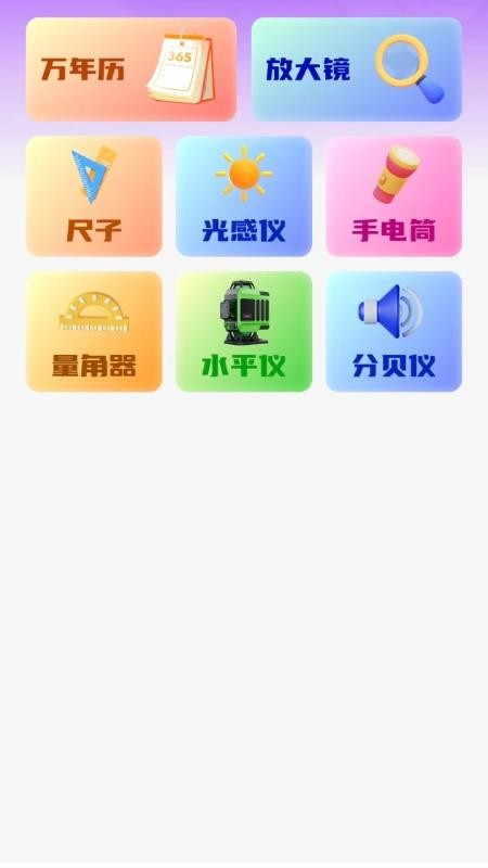 还为你准备了实用的工具箱,你可以获取许多实用的工具,例如:万年历、放大镜、尺子、手电筒等等;