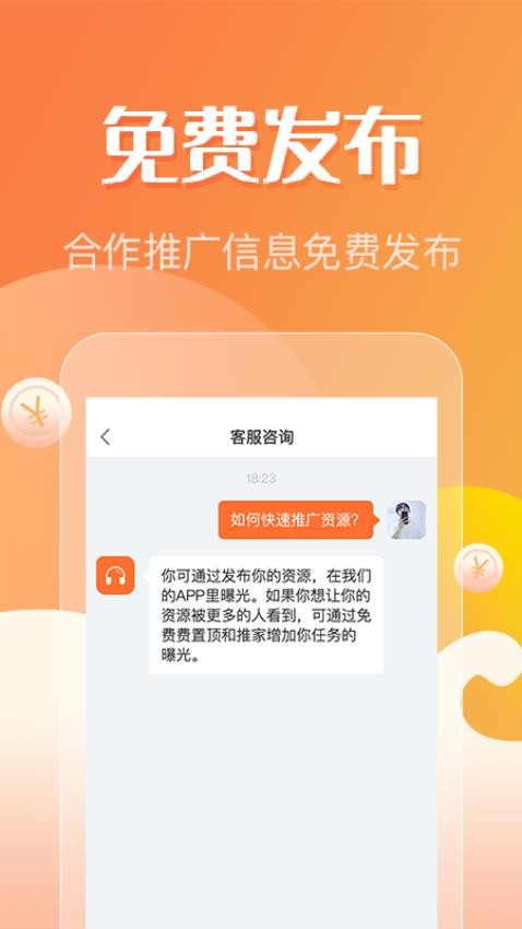 用户在这款软件上进行商务合作推广信息发布完全免费,无需担心花钱。