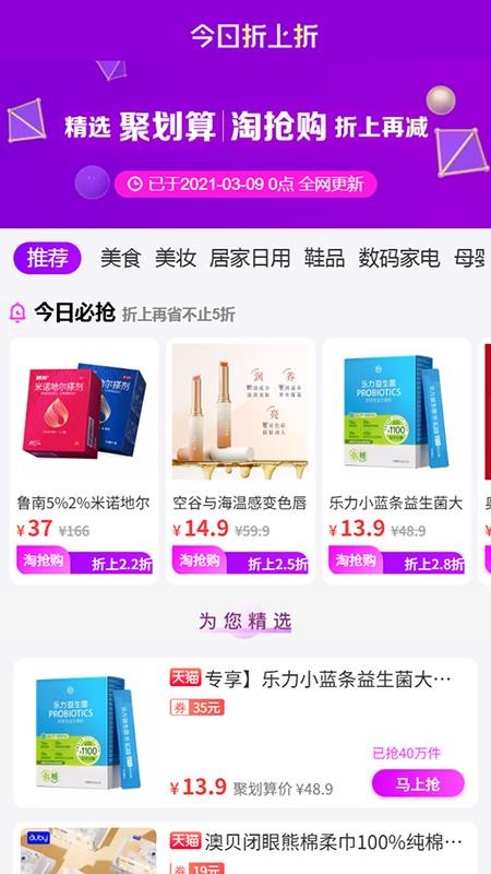 每个时间段都有限时抢购活动,你能够快速的参与到抢购活动中,抢购更多的商品;