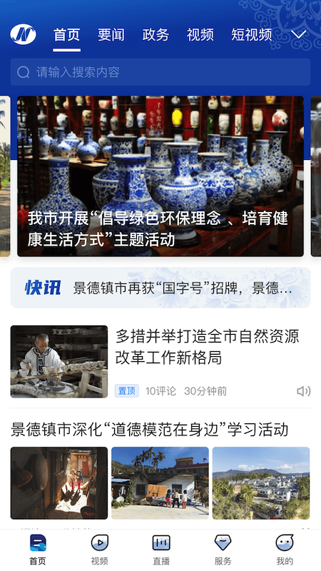 景德云媒客户端立足本土融合地方特色,运用新技术打造集新闻、服务等于一体的综合性资讯平台。全面聚合优质新闻资源、服务资源,为用户提供音、视频、图片等多类型资的展示、互动式的新闻体验。