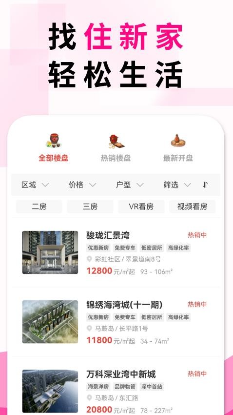 软件为用户展示了热销楼盘,用户可随时查看,了解楼盘详情。