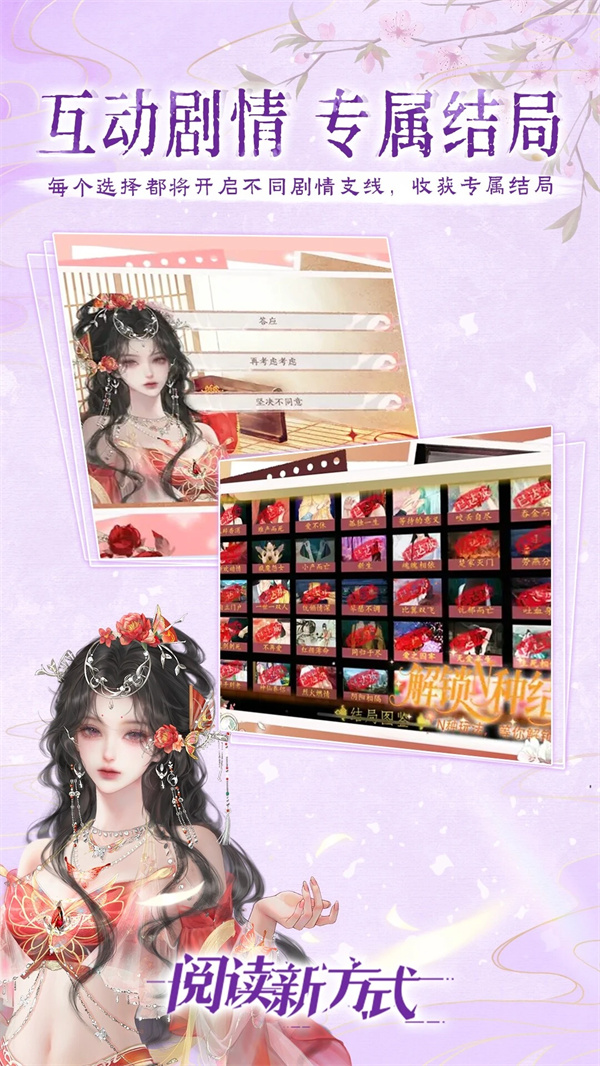 是以文字、音乐、图片以及选项等为基础,通过不同选项来体验不同剧情的互动式阅读。不再是通过单一的文字阅读来了解故事剧情。更有各种超清画质、互动玩法,带给你身临其境看故事的感觉