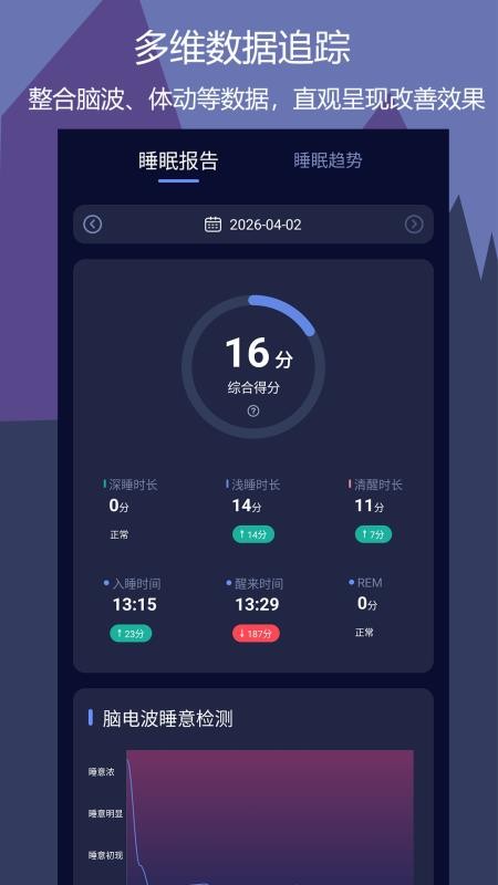 1、精准监测解读用户的脑电波,深入分析用户的睡眠。