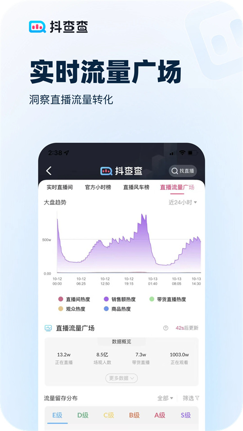 爆款直播间,大咖主播直播间实时数据秒级观看。
