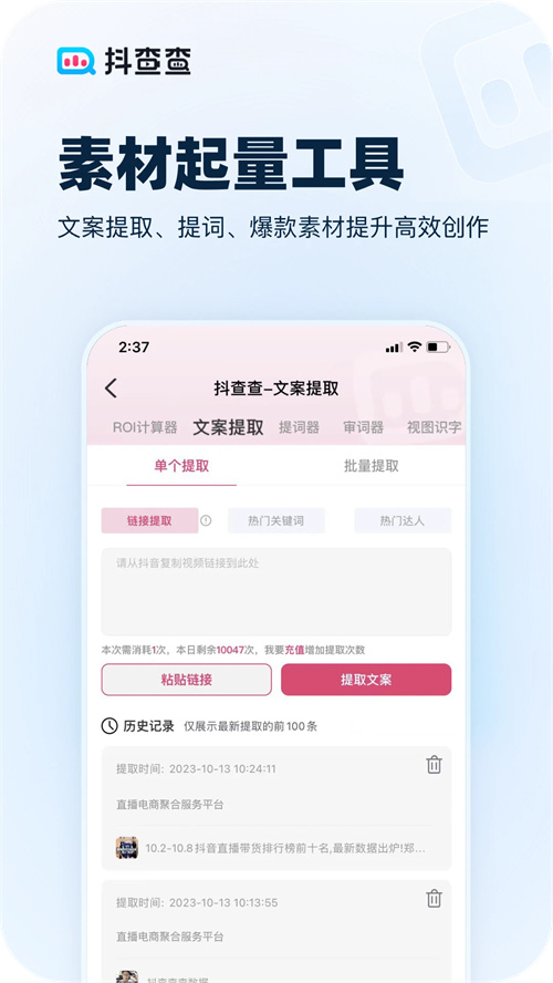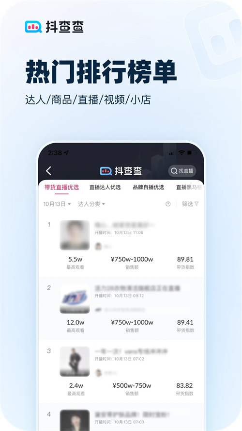 抖查查app官方版是一款专门针对抖音短视频的数据分析软件,可以让用户可以轻松看到抖音直播间的各种流量数据,例如:带货数量、观看人数、涨粉多少等多项数据。让你更好的了解热门商品,数据变化。软件还有各种直播课程,带货课程等各种教学等你免费观看。帮助小白快速学习直播技巧,能够快速带来流量并开始带货开始赚钱。
