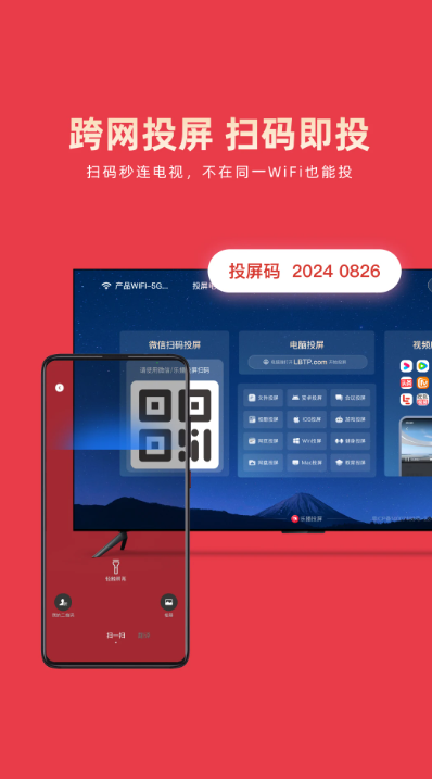 ―在线视频投屏:支持抖音、快手、B站等3000+视频APP原生投屏,全网高清在线视频随意投;手机成功投屏电视后,手机可退出播放界面进行任意操作;