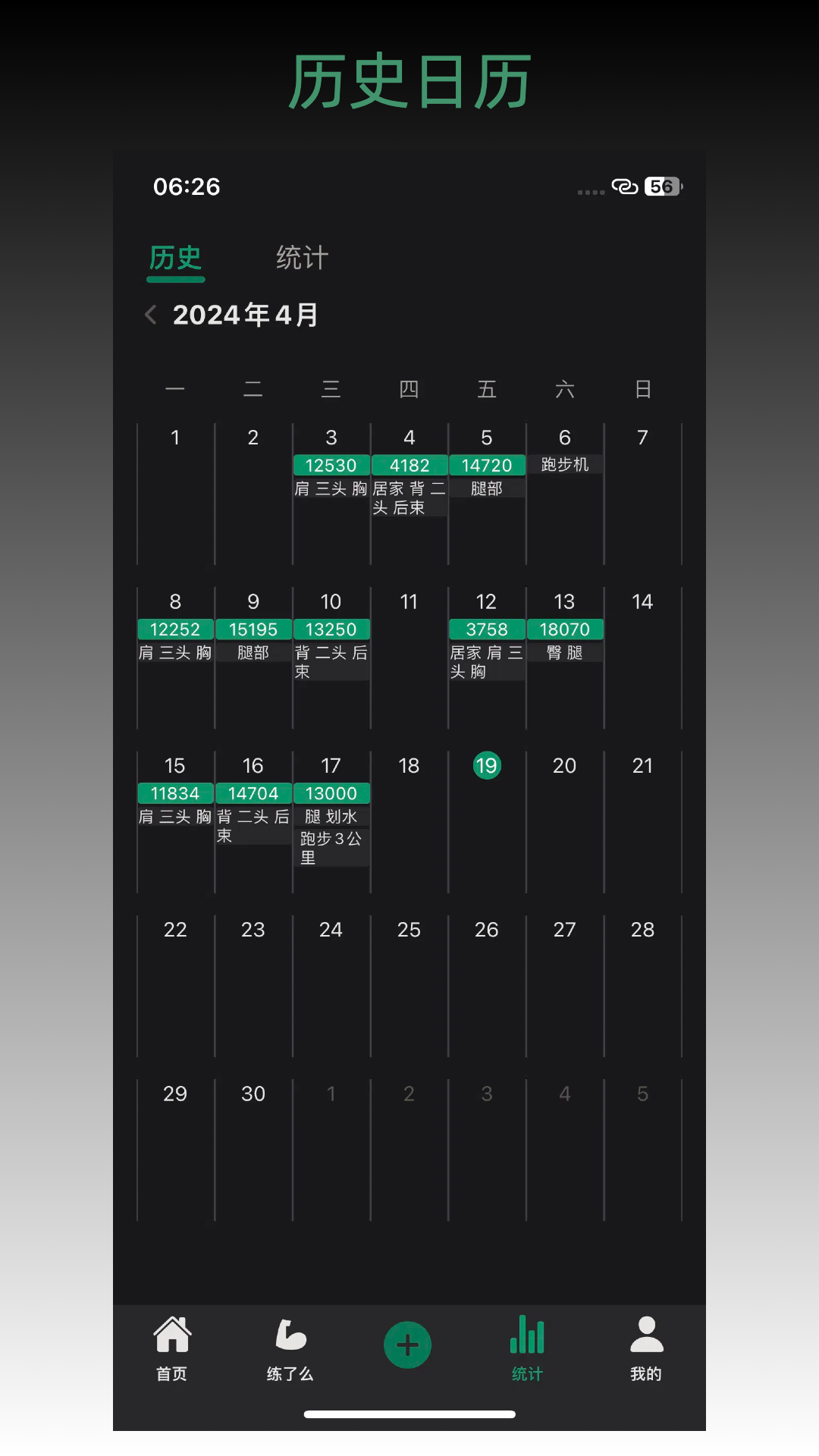 用户可随时在线查看自己的训练历史日历,便捷回顾你的运动记录。