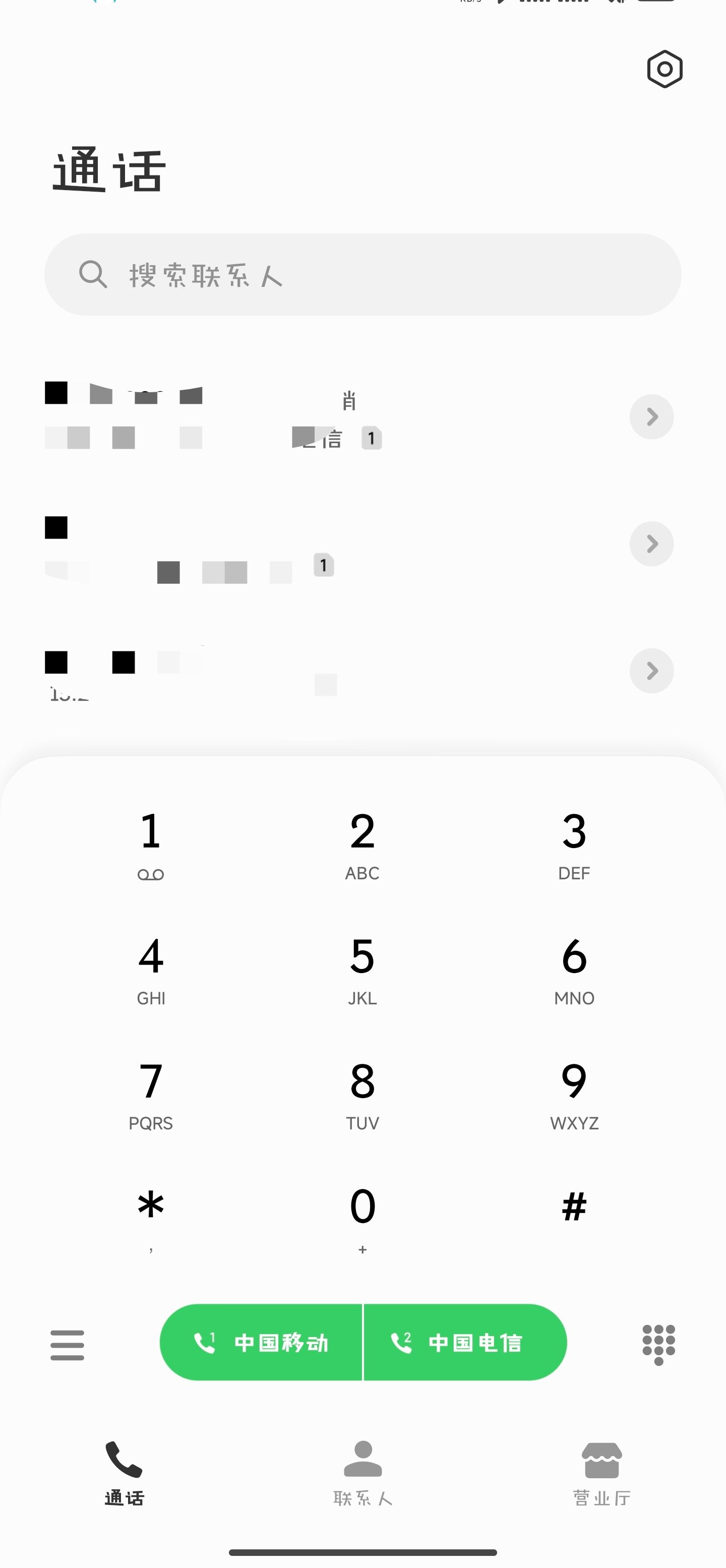 打开小米手机中的电话页面,点击右上角的【设置】图标。