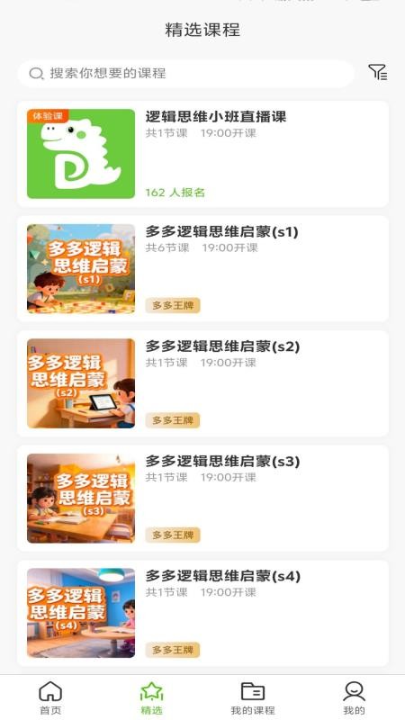 多多动脑APP是一款深受广大儿童喜欢的思维启蒙训练学习软件,旨在帮助孩子能够学习到更多的知识,在这里可以有效培养和锻炼孩子的逻辑思维,拓展孩子的认知,并让孩子养成良好的学习习惯,日常可以积极主动的开展学习训练。丰富多样的课程资源,并且都是精选推送,可自由查看和选择学习训练,满足孩子的学习要求;并且可以记录所有自己学习的课程,知道即将开启学习的直播课程,便于准时学习,不再错过任何重要课程。非常贴心且专业的课程学习模式,有需要的用户快来本站下载多多动脑免费版体验吧!