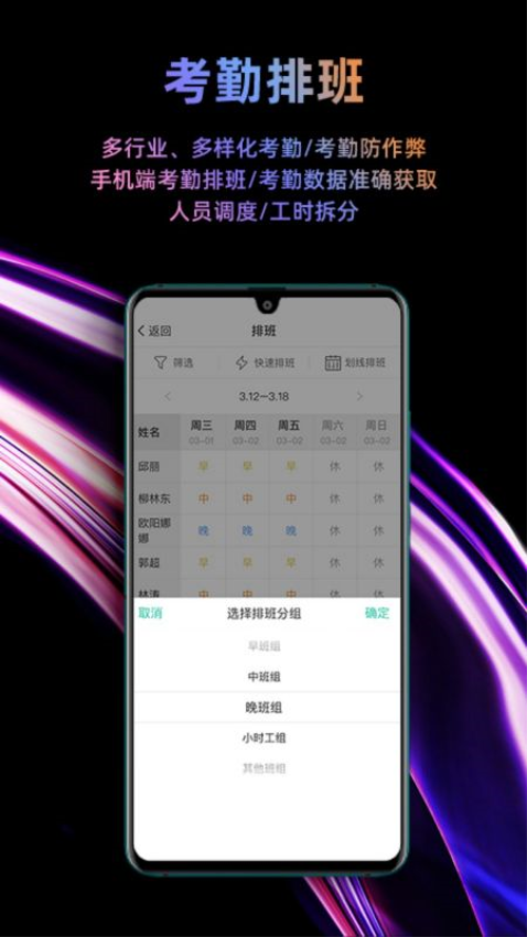 复杂排班:精细化加班管控,复杂班次、假期、排班规则设置、批量排班及各类自定义排班