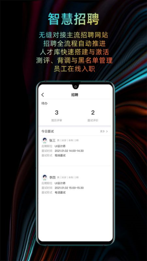 i人事手机版助力企业hr的工作需要钱,深度对接钉钉、飞书、企业微信等场景办公平台,为您提供考勤打卡、人员管理、智能薪酬等功能,它将成为hr的得力帮手!