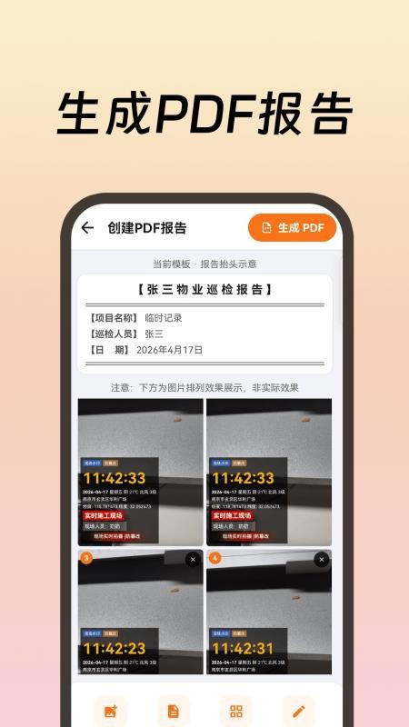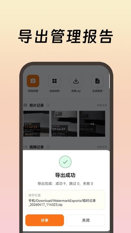 3、选择需要的水印照片进行拼图,生成PDF报告进行导出分享。
