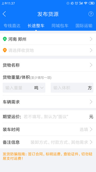 5.在线发货:在线发布整车、零担、同城包车需求,快速响应