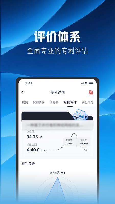 在线就能查看专利评估,了解实力评分,还能全面掌握价值度和评估金额;