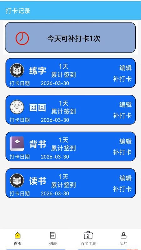 天天打卡日历官方版APP这是一款拥有实用日历打卡记录功能服务的应用软件,在这里提供全能的手机日历工具箱资源,轻松即可参与每日习惯打卡,帮助用户快速制定每日任务与目标,轻松进行各项事项分类打卡记录,管理个人日历行程与任务信息非常全面准确;而且该平台还拥有详情的打卡统计信息,进行日常补卡操作也很简单;除此之外,在天天打卡日历免费版APP软件当中支持用户随时添加新的打卡任务名称,制定设置需要打卡任务内容非常容易;对这种程序应用感兴趣的小伙伴们千万别错过了,欢迎来本站下载体验使用。