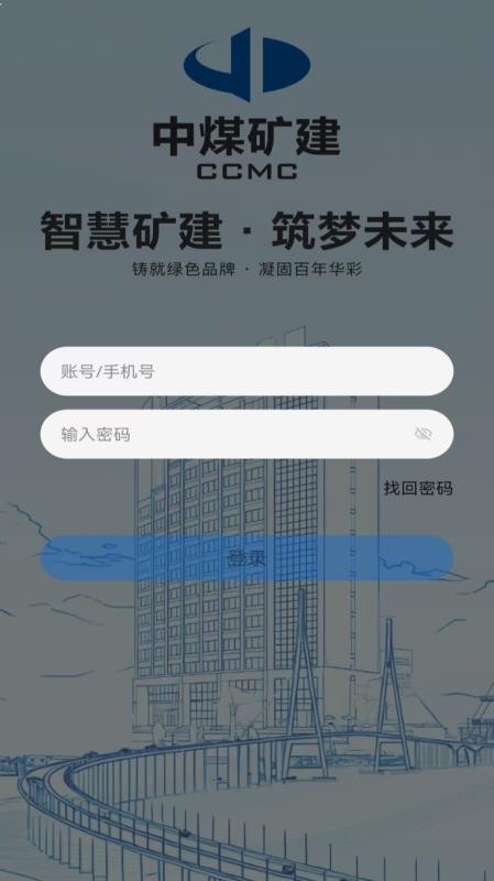 1、在线下载并打开中煤矿建APP,输入账号密码方可登录使用;