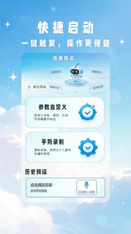 帮助用户快捷启动相关的场景预设,助力用户便捷操作,快捷触动启发。