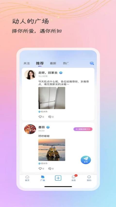 实时推荐最新动态信息,可自由在线阅览和互动,还能关注自己心动的人;