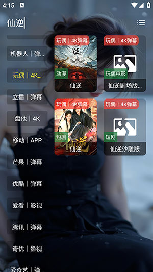 1、软件自带影视源接口配置,点击左上角的影视源可以切换。