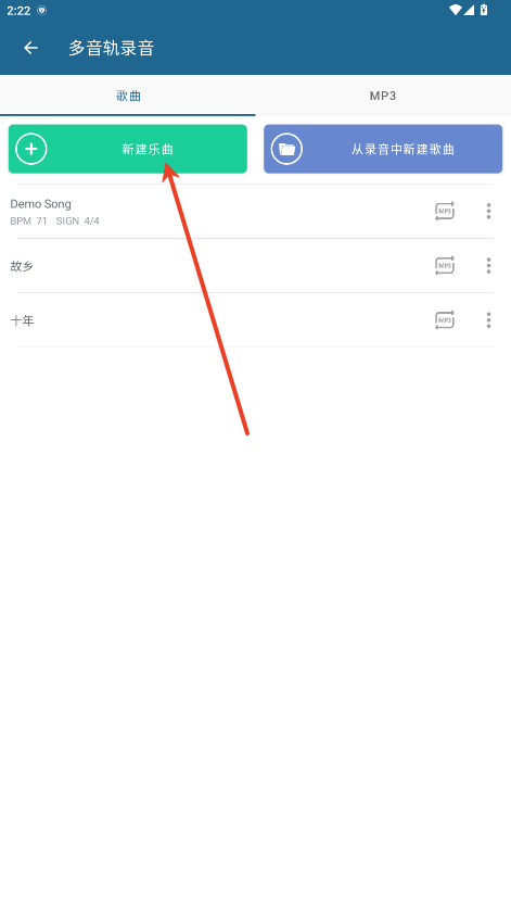 2.多音轨合成器页激册面,点击新建乐曲。