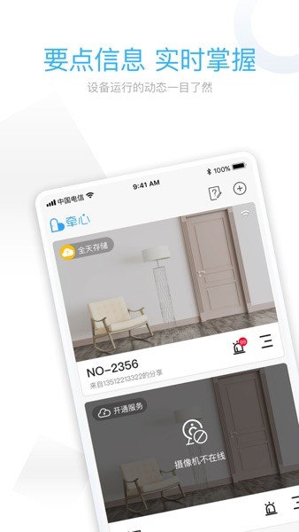 牵心pro摄像头app功能强大,支持多个摄像头的绑定操作,有了它,您就可以实时监控摄像头发来的画面,关键视频上传至云服务器,不用畏惧丢失的风险,随时随地看过去的一切!