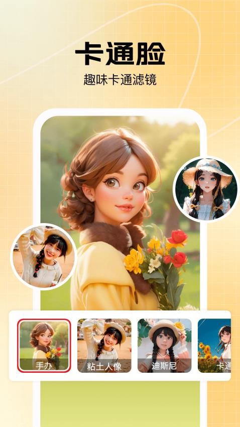 用户可选择喜欢的卡通滤镜将照片一键卡通化,轻松拥有卡通形象。