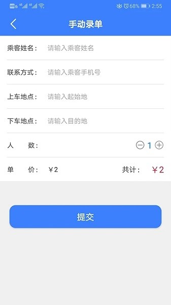 录单功能,支持司机手动对为通过app下单的乘客录单;