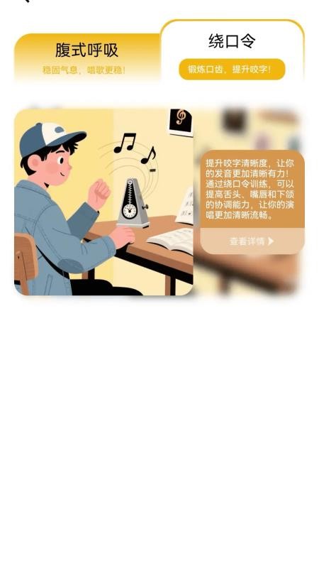 可在线通过腹式呼吸和绕口令进行咬字训练,提升自己的咬字清晰度,唱歌更精准;