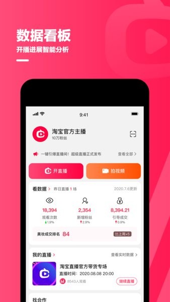 使用淘宝直播主播版app可以时刻分享你的精彩,主播们可以随时查看自己的的数据版面,时刻了解自己。