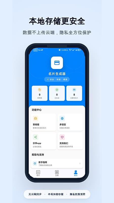 简简单单的名片编辑工具,可自定义对名片进行设定,满足用户的个性化需求;