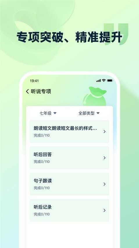 单句循环反复精听,九宫格游戏练听力,单句听写消灭听力死角。