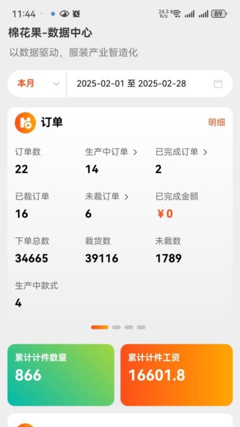 面向服装产业提供智能化生产管理办公服务的软件,将服装生产管理工作所需要的各种功能全面覆盖,对服装生产过程进行信息化管理,方便用户随时跟进服装生产的最新进度,将服装生产进度情况实时掌握,还将各种订单数据、计件数据全面统计,让用户可以轻松掌握各项业务数据。