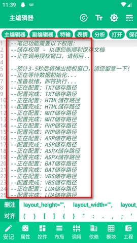 2、进入主编辑器界面,应用会自动进行初始化配置,并显示各项路径配置完成的日志信息。