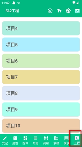 6、点击底部工具栏的“工程”按钮,进入工程管理界面,这里以列表形式展示了您创建的所有项目。