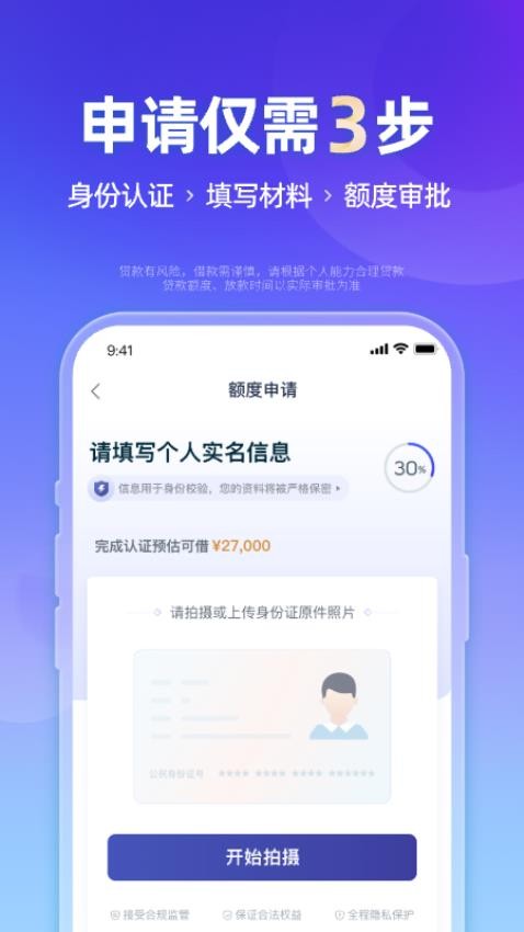 进行额度申请、借款申请只需简单几步,让用户都能轻松完成。