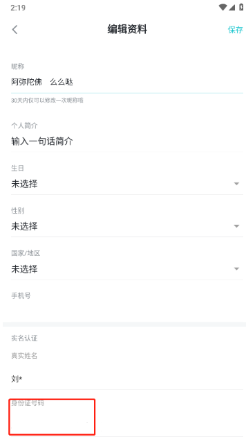4、点击身份证号。