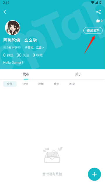 3、点击修改资料。