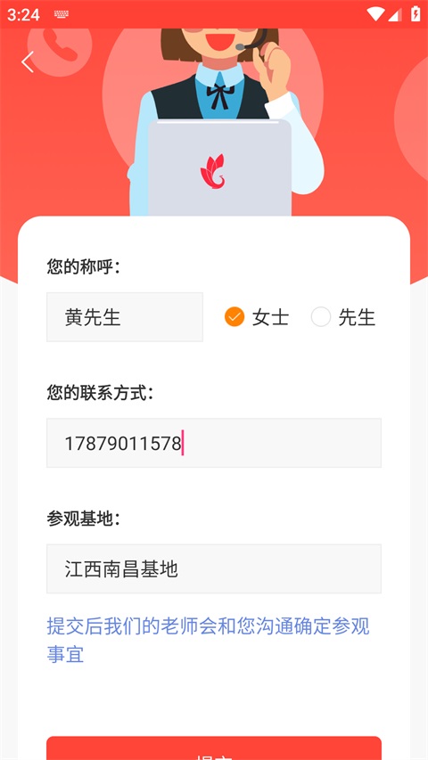 3、如果城市有基地,点击预约并填写相关信息;