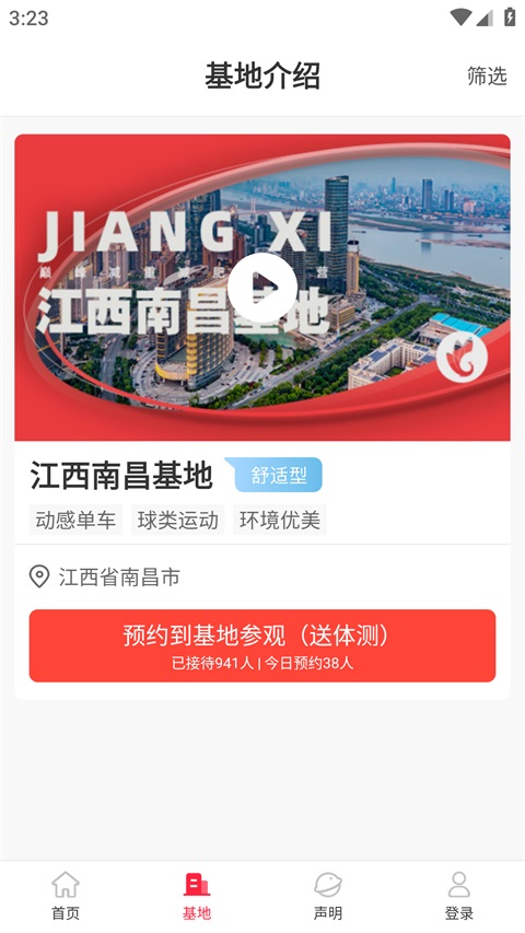 2、点击右上角的筛选,选择所在城市,即可查看该城市是否有基地;
