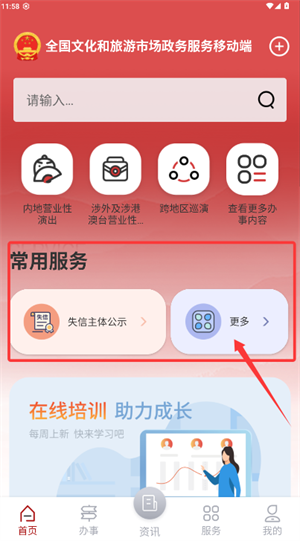 4、通过首页常用服务区的更多选项,可查看失信公示等扩展功能。