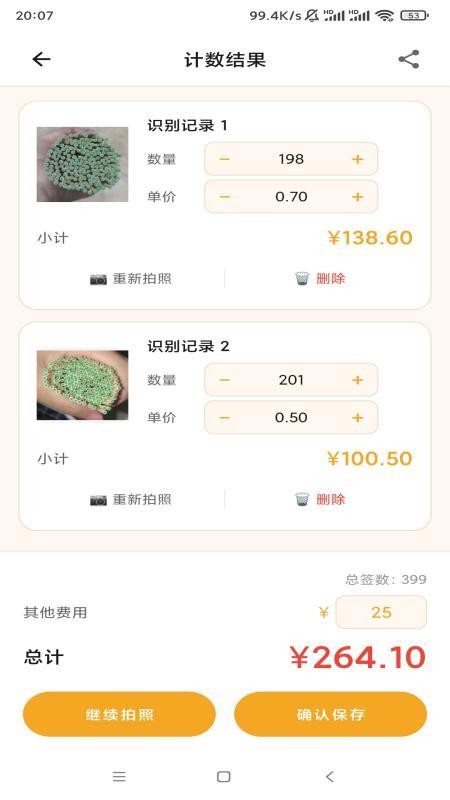 软件提供了拍照计数的功能,用户可以随时进行拍照识别签头,轻松计数。