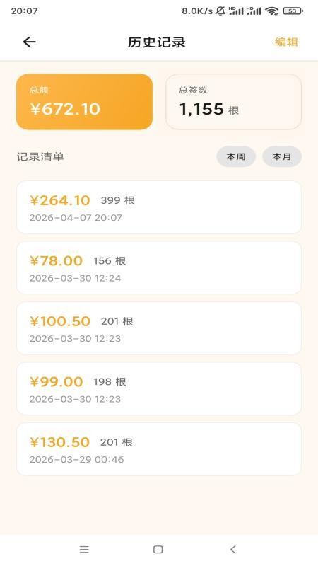 这里也可以对每根签的待机爱来自动计算,轻松计算总金额,从而可以高效结账。