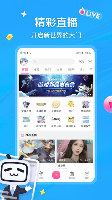哔哩哔哩(bilibili)又名“B站”,是十分受欢迎的视频播放软件。哔哩哔哩吸引用户最大的特色就是,用户在观看视频时,可以发送实时弹幕,也可以看到其他用户发送的弹幕,实时互动。拥有非常多的视频分区,其动画专区在线用户是最多的,二次元已经成为它的代名词。