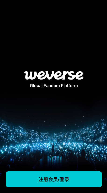 1.请在本网站下载安装并打开最新版本的Weverse,点击注册会员。