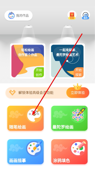 1、进入绘画APP主界面后,点击随笔绘画选项能够进入绘画创作页面。