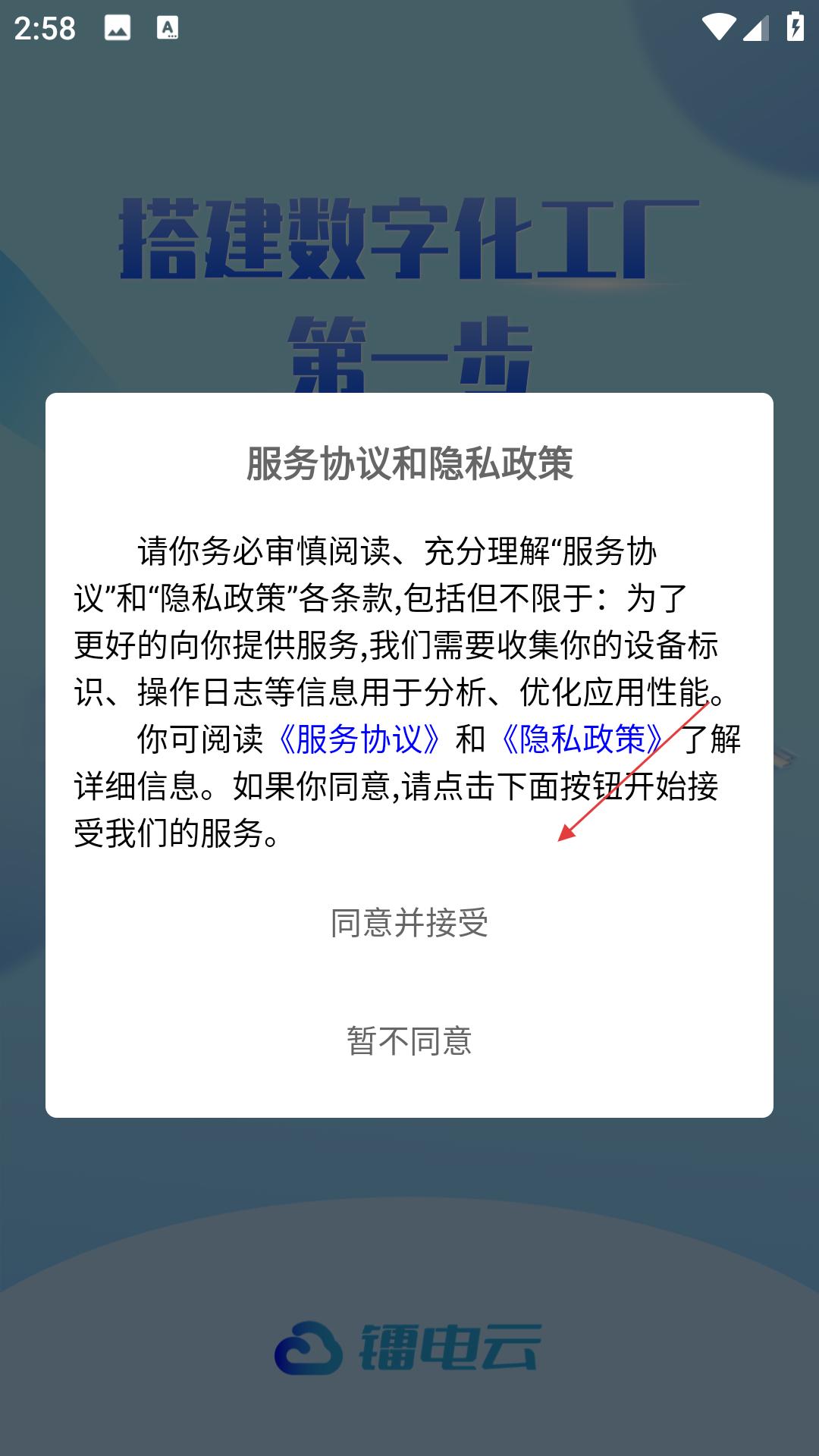 1、安装完成后首次启动应用,需仔细阅读并同意用户协议和隐私政策条款
