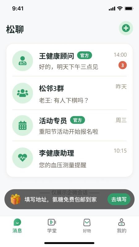松龄之家APP最新版是一款集养生学堂、购物等多功于一体的软件,软件中推出了大量的优质好物资源,用户可以任意挑选你需要的商品购买,还可以享受各种限时秒杀活动价,购买到物美价廉的好物商品,让用户线上购物非常的轻松便捷,还提供有松果兑换商品的积分商城,可通过每日签到的方式领取丰厚的松果奖励,用松果兑换商品可让用户免费获取心仪商品,为用户带来更多的优惠福利可以尽情享受,还推荐了很多健康养生课程可以随时观看学习,让用户可以轻松学习更多专业的健康养生知识,有需要的用户就快来下载松龄之家免费版使用吧!