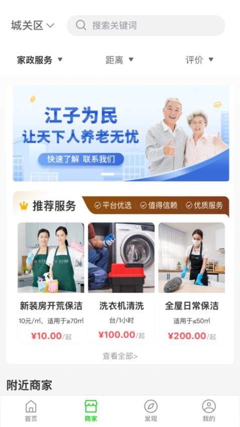 江子为民APP是一款专注中老年人打造的生活服务平台,致力为用户提供更加温馨、便捷和安全的生活服务,在应用中就能查看诸多附近商家资源,了解商家服务项目,可自行选择下单预约,便于能及时上门提供日常保洁、厨房清洁、家电清洗等服务,让每个老年人都能享受更优质的生活,享受更贴心的服务;非常全面的服务内容,并且都是专业人员提供服务,保障能高效完成每项任务,让每个老人真正享受到美好贴心的生活;江子为民官网版软件还支持用户在线加盟推广,便于有人使用自己还能获得奖励,并能在线抵扣现金使用,消费更省钱!