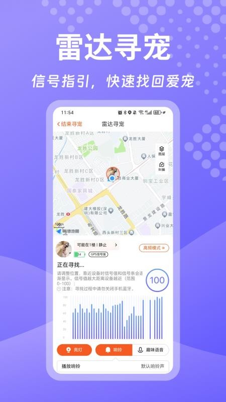 帮助用户轻松高效的找回自己的爱宠,就可快速定位找回,轻松获取信号的指引。